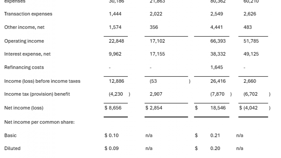 Das bereinigte EBITDA in den ersten neun Monaten des Jahres 2024 betrug 106,2 Mio. $, was einem Plus von 27,1 % bzw. 22,7 Mio. $ gegenüber dem Vergleichszeitraum des Vorjahres entspricht. Das bereinigte EBITDA als Prozentsatz des Nettoumsatzes belief sich auf 36,3 %, verglichen mit 36,1 % in den ersten neun Monaten des Vorjahres.