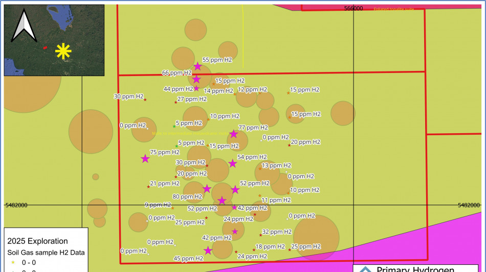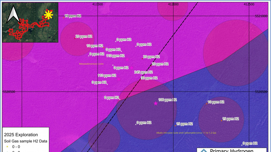 "The Phase 2 exploration program at Hopkins and Blakelock has successfully identified multiple hydrogen anomalies that correspond with favorable geological features," stated Peter Lauder, P.Geo., Vice President of Exploration for Primary Hydrogen. "The spatial coherence of these anomalies, particularly their association with forest circles, fault structures, and mafic dykes, provides encouragement for continued investigation of these target areas."