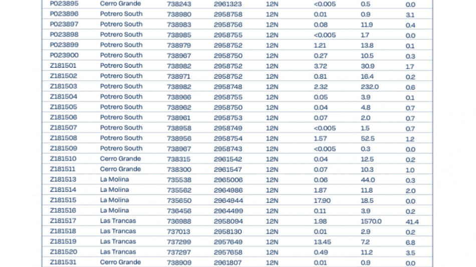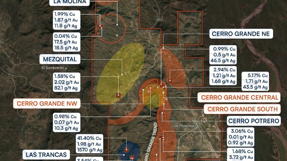 The campaign confirmed copper-gold-silver mineralization across multiple target areas, including Potrero South, Las Trancas, Cerro Grande Northwest, La Molina and Mezquital, and led to the discovery of a new skarn zone at Potrero South target, located approximately 3 km south of the Cerro Grande central discovery, with over 300 metres of surface exposure and samples exceeding 3% Cu. Additionally, the program successfully confirmed mineralization at targets generated through the Company's machine learning exploration program, including the emerging La Molina target.