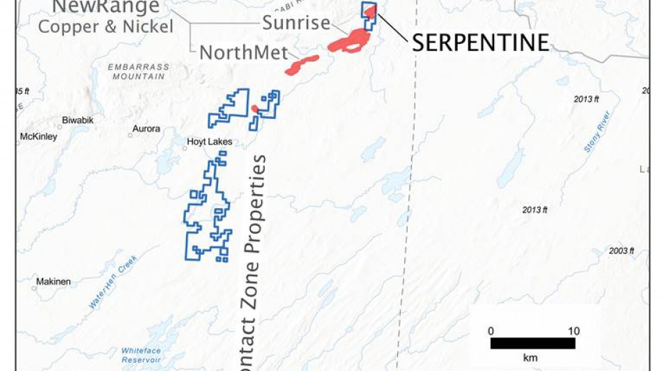 The Serpentine Project is located in the Mesabi Range mining district, along trend with several well-known significant deposits such as Maturi (1.8 Billion tonnes) (Barber et. al, 2014) and Mesaba (2.2 Billion tonnes) (Welhener and Crowie 2022) (Figure 1) and has access to substantial mining infrastructure in the long-lived mining district of the Iron Range, Minnesota. Serpentine has a historical National Instrument (NI) 43-101 ("NI 43-101") Inferred Mineral Resource Estimate ("Historical Estimate") of 277Mt @ 0.37% copper and 0.12% nickel and an Indicated Mineral Resource Estimate of 22Mt @0.47% copper and 0.16% nickel (Purtich et al., 2020). The Historical Estimate states that it was prepared pursuant to NI 43-101 and in conformity with generally accepted "CIM Estimation of Mineral Resource and Mineral Reserves Best Practices" guidelines. Mineral Resources have been classified in accordance with the "CIM Standards on Mineral Resources and Reserves: Definition and Guidelines". The Company believes that an option in respect of the Serpentine Project is a cornerstone for value creation and complements the existing high-potential exploration portfolio along the South Contact Zone.