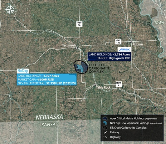 Apex Critical Metals Acquires Key REE Rights at Highly Prospective Elk Creek Carbonatite Complex, Nebraska