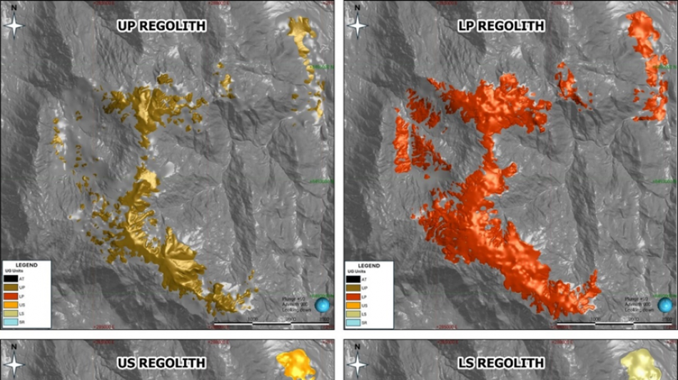 Figure 1. Three-dimensional regolith model; UP: Upper Pedolit; LP: Lower Pedolith; US: Upper Saprolite; LS: Lower Saprolite (Source: Aclara, 2025).