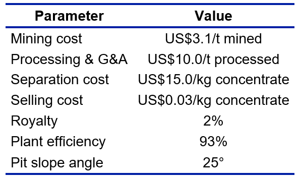 Table 5. Key economic inputs to the Lerchs-Grossmann pit optimization model.