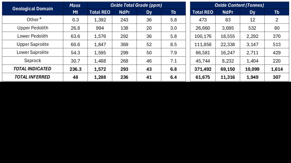 Strong geo-metallurgical database supports robust process: The MRE is supported by 14,001 samples analysed for total rare earth oxides (TREO), desorbable rare earth oxides (DREO), and impurities, providing a granular understanding of the Project's geo-metallurgical behaviour compared to 2024 Resource Statement, which was based on 3,789 samples.
