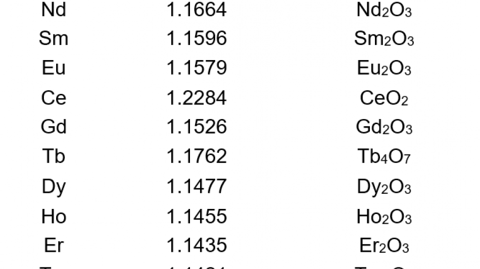 Table 4. Conversion factors from elemental rare earth elements to rare earth oxides.