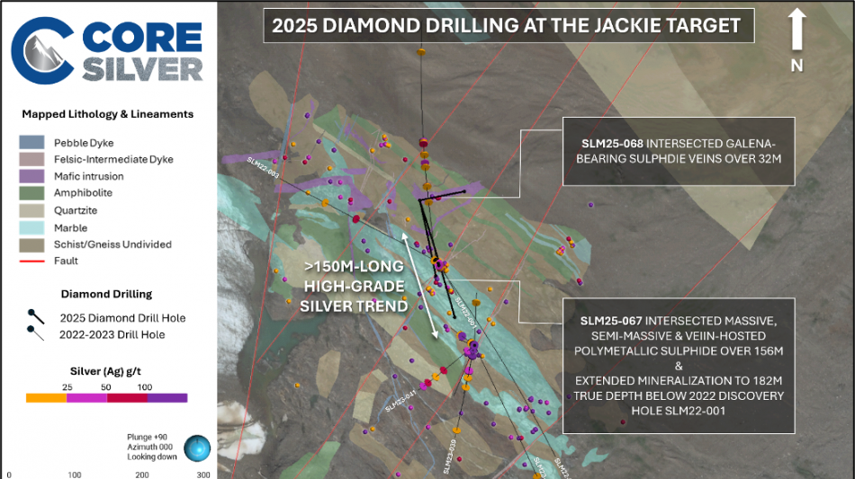 Core Silver Extends High-Grade Silver-Polymetallic Sulphide Mineralization at the Jackie Target