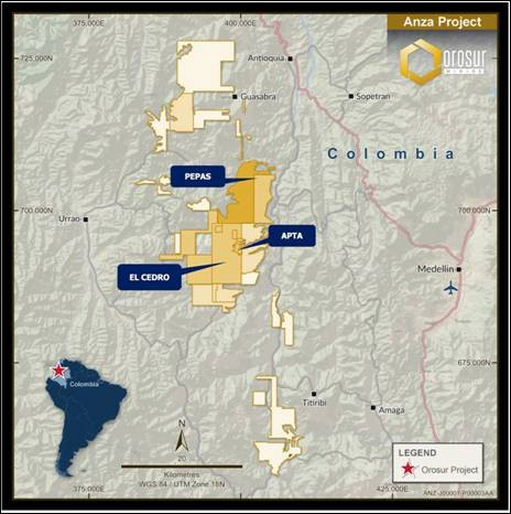 The Anzá Project is currently wholly owned by Orosur via its subsidiaries, Minera Anzá S.A. and Minera Monte Aquila S.A.S.