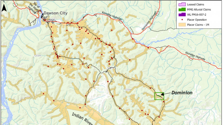 Metallic Minerals holds a 100% interest in37.8 square kilometers of highly prospective alluvial ground along the Australia Creek and Dominion Creek drainages south of Dawson City, Yukon. Dominion Creek is a long-established gold-producing area, while Australia Creek has been recognized by the Yukon Geological Survey as the eastern continuation of the prolific Klondike Goldfields, the Yukon's largest placer gold-producing region (see Figure 1).