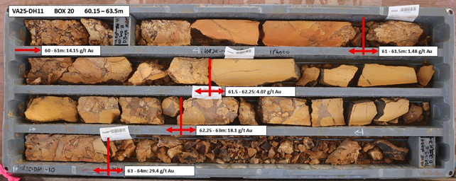 22.12 m @ 12.80 g/t Au from 43.48 m depth - VA25-DH11 (true width of 20.70 m)