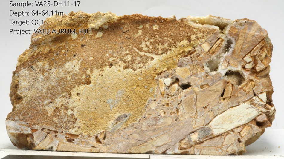 Image 2: VA25-DH11 (64.00-64.11 m depth - 83.30 g/t Au) showing chalcedonic quartz-cemented hydrothermal breccia.