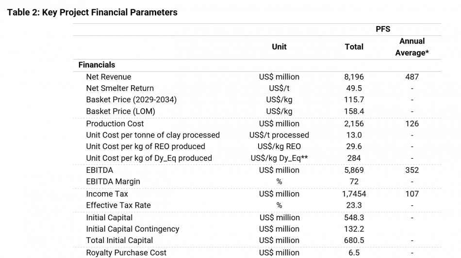 An average annual commercial [1] discount of US$196 million - equivalent to 29% of the annual gross revenue - has been applied to account for the full separation of the Carina Project's mixed rare earth carbonate ("MREC"). Aclara's plans consist of paying this separation fee to its separation project in Louisiana. The NPV associated with Aclara's future separation facility in Louisiana is not included in the PFS.