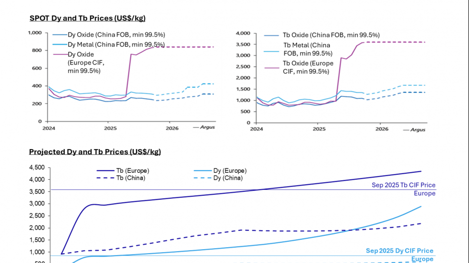 The REE price forecast provided by Argus Media based on European prices (excluding China) aligns well with market environment of export restrictions from China on HREEs [1] and future supply/demand dynamics.