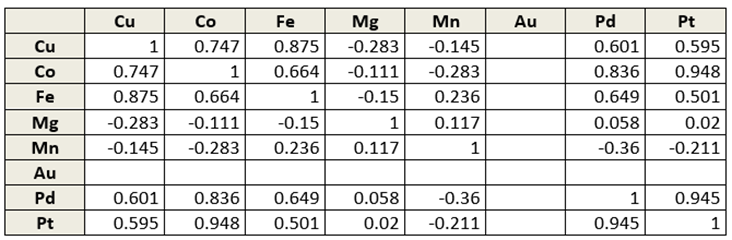 Table 2. Correlation between the different metals