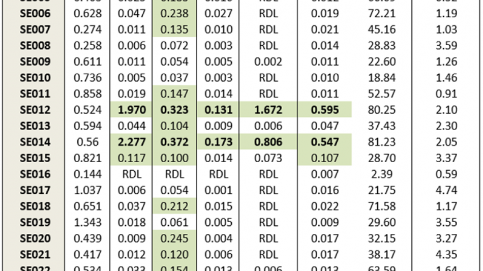 Table 1. Results from chosen surface grab samples RDL: Reported Detection Limit