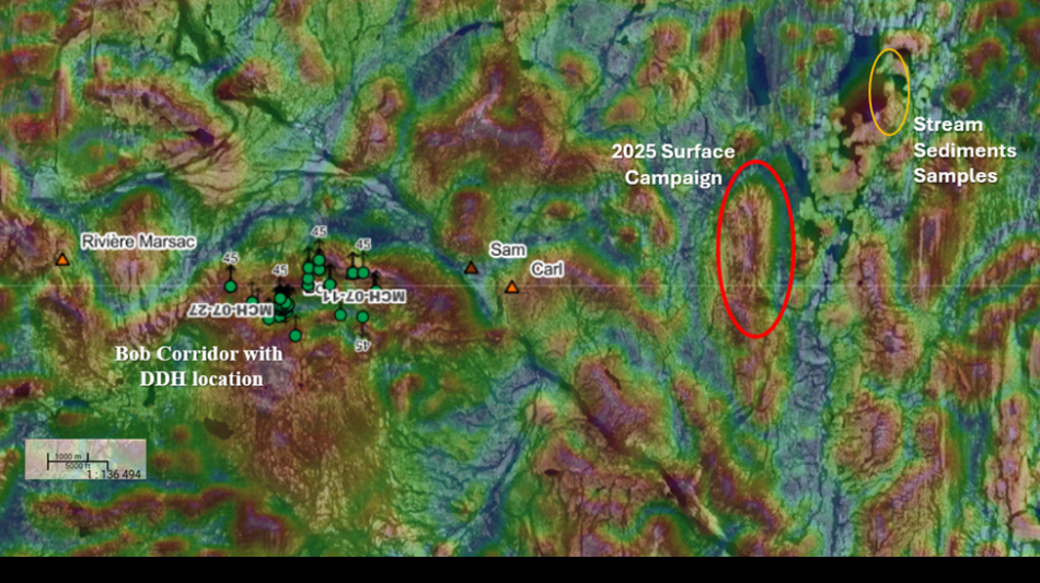 The Company plans to conduct a high-resolution ground magnetic and EM survey, followed by mechanized trenching and channel sampling over the new South-East Manic Zone. The 3D geological model will be updated, and a 2026 drill program will be prepared to target both the Bob Zone depth extensions and the newly extended South-East area of interest.