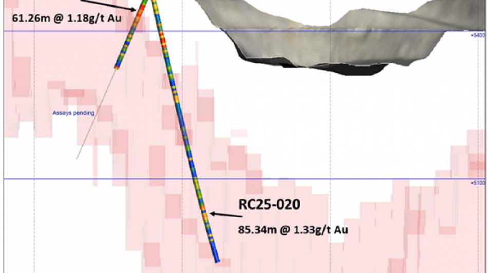 RC25-020 returned 85.34m @ 1.33 g/t Au (beneath the existing pit) and,
