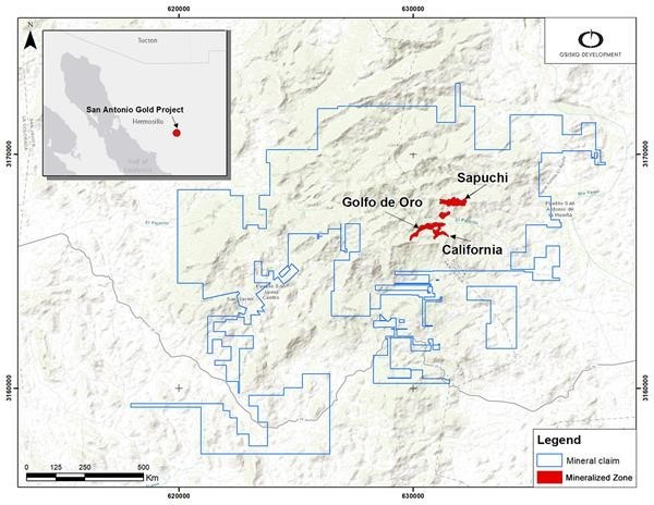 The San Antonio Gold Project is a brownfield open-pit opportunity located in Sonora, Mexico, with a history as a past-producing oxide copper mine from 2011 to 2018. Osisko Development acquired the Project in 2020 and has since focused on evaluating and advancing its gold potential through extensive drilling and metallurgical testing. Osisko Development completed a 2021 drill program that contributed to the initial MRE announced in June 2022, supported by the NI 43-101 Technical Report prepared by Micon International Limited. The MRE highlights five key deposits - Sapuchi, Golfo de Oro, California, Calvario, and High Life - spanning a hydrothermal breccia system with mineralization up to 300 meters deep.