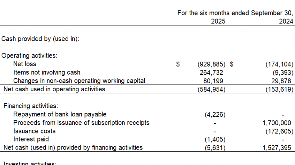 On October 29, 2025, the Company closed on a non-brokered offering of $1,025,000 of debenture units. See "Subsequent Events" for further details.