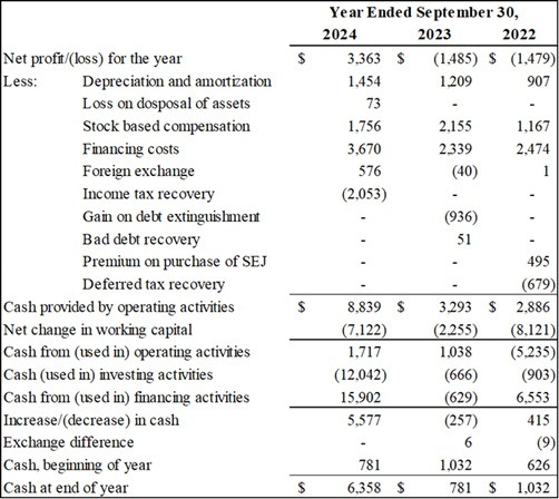 The Company generated positive cash from operations of $1.7 million for FY 2025, compared to cash generated from operations of $1.0 million in FY 2024. Cash generated from operating activities before net changes in working capital was $8.8 million for FY2025 compared to $3.3 million for FY 2024. A significant improvement in operating cash flow of $5.5 million.