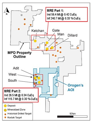 VANCOUVER, BC / ACCESS Newswire / December 11, 2025 / (TSXV:OGN)(OTCQB:OGNNF) Orogen Royalties Inc. ("Orogen" or the "Company") is pleased to note Kodiak Copper Corp.'s (TSX.V:KDK) ("Kodiak") announcement of an initial Mineral Resource Estimate ("MRE") on Kodiak's South, West and Adit deposits forming the southern area of the greater MPD copper-gold porphyry project ("MPD") in British Columbia. Orogen holds a 2% net smelter return ("NSR") royalty on the southern area of the MPD project subject to a 0.5% buydown for C$2 million.