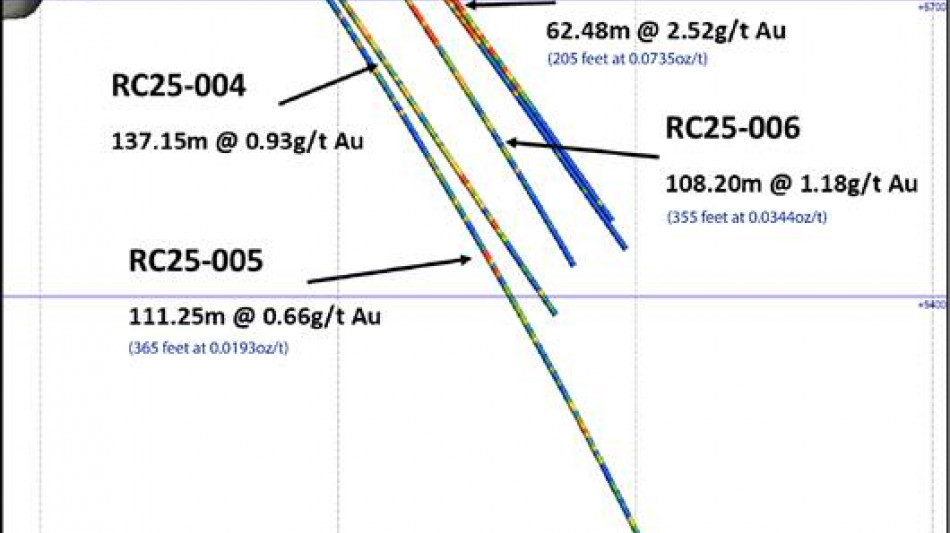 RC25-002 returned 62.48m @ 2.52 g/t Au from 25.91m