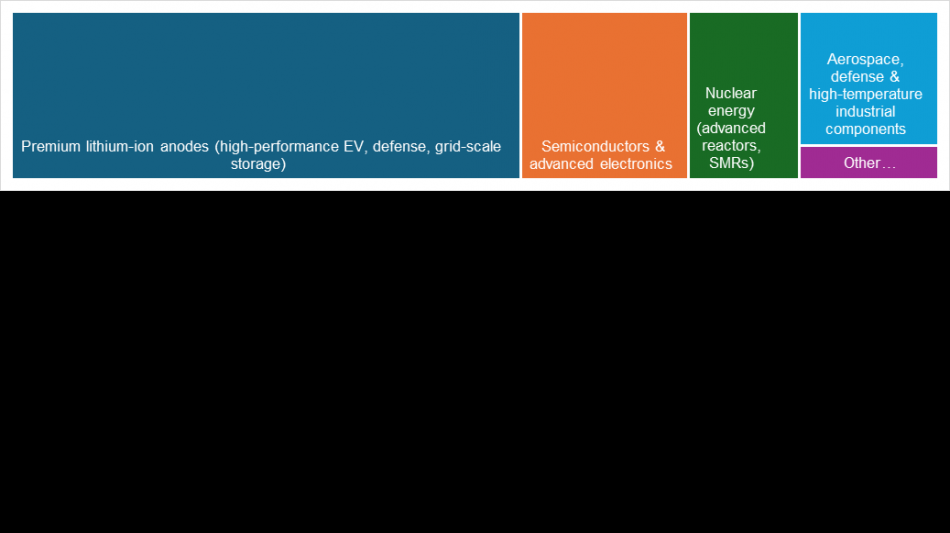 Strategic implications and next steps: These results further reinforce the potential of Albany graphite across a range of high‑value specialty markets that demand ultra‑high‑purity, secure graphite supply. This includes applications in nuclear energy (large reactors and small modular reactors), defense and national security infrastructure, advanced aerospace and hypersonics, and premium battery and high‑temperature industrial components, where long‑term performance, reliability and traceable supply are increasingly critical. As global demand grows from AI‑driven data centers, electrification and re‑shoring of critical supply chains, Management believes that purified natural ultra‑high‑purity graphite such as Albany's can play an important role as a differentiated feedstock into these key markets.