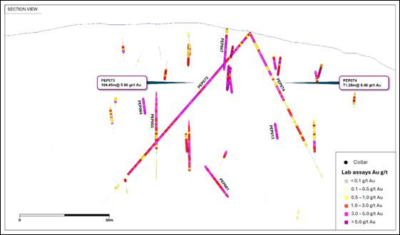 PEP074 - 71.35m @ 6.46g/t Au from surface