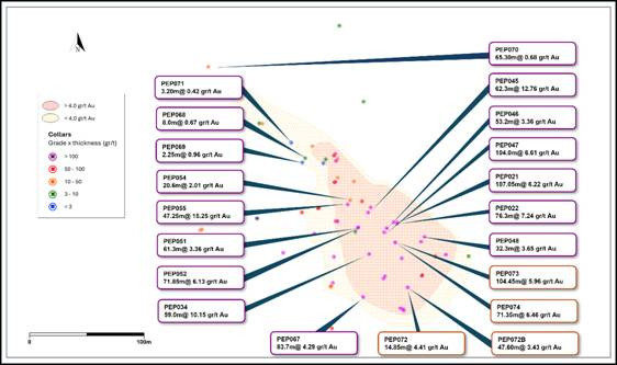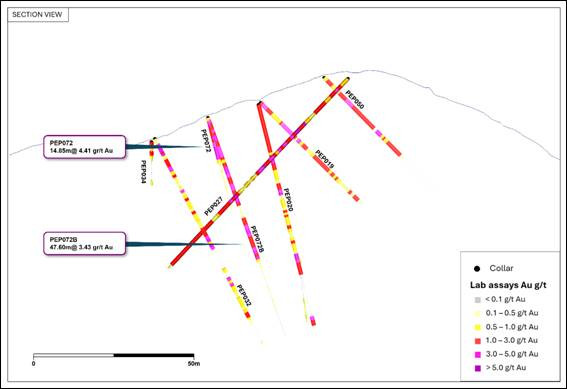 This infill drill program was completed late in December 2025, with results from the final three holes PEP072, PEP073 and PEP074 just received.
