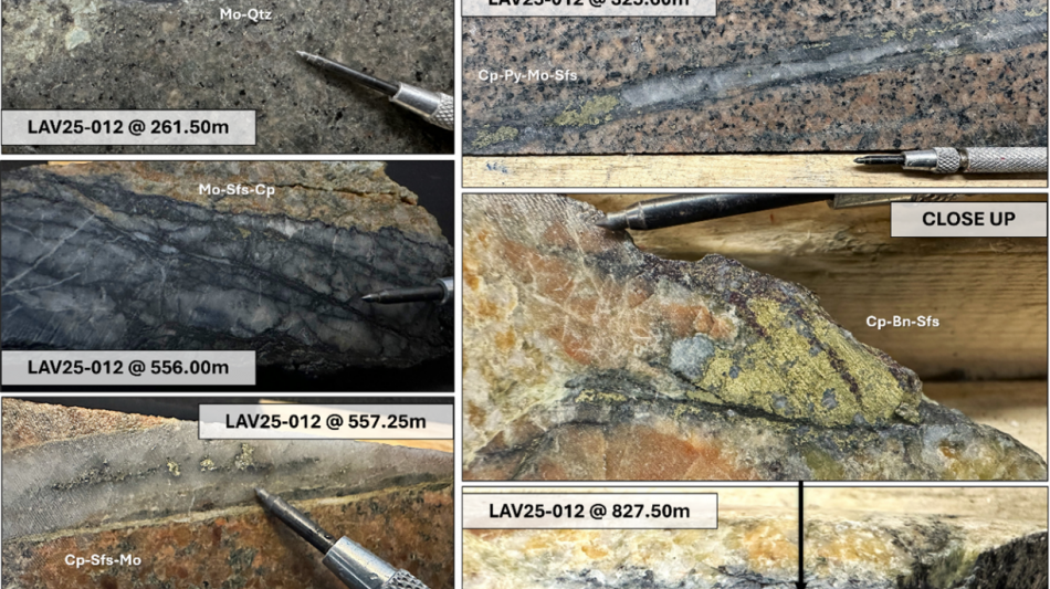 The alteration and mineralization styles observed in LAV25-012 further indicate proximity to a large, multi-phase Cu-Mo-Ag porphyry centre, with open potential both at depth and along strike.
