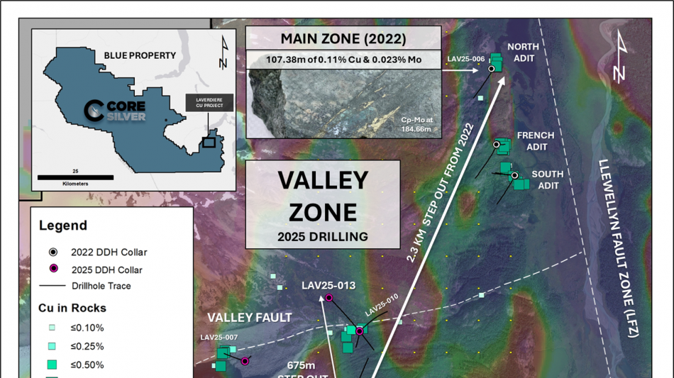 "LAV25-013 is a substantial advancement for the Laverdiere Copper Project," said Nick Rodway, President and CEO of Core Silver. "This hole confirms that we are dealing with a very large porphyry system, with strong mineralization across meaningful scale. The system is clearly open, and we are only beginning to unlock the full potential of the Laverdiere Porphyry."
