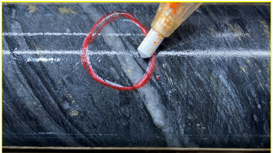 Figure 1 - Visible gold discovered in the mineralized interval within N2-25-013.