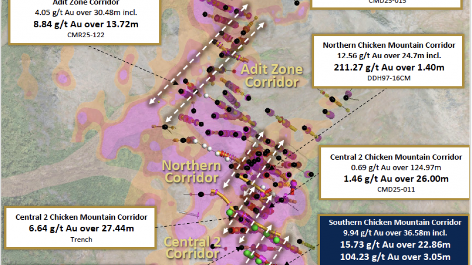 "There aren't many times in your career when you can announce a 364 gram-meter intercept and follow that with '...and by the way, the project boasts a 100% drill success across 176 drill holes,' " stated Tony Reda, President and CEO. "That combination is rare in exploration. Every single hole hit gold, which we believe is evidence of a very robust mineralizing gold system. Furthermore, the bonanza-grade intercept in drill hole CMR25-084 demonstrates that the Chicken Mountain system can generate high grades within mappable structural corridors."