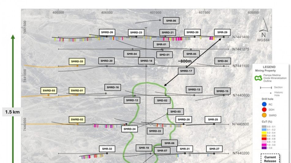 Pampa Medina Scout Drilling Delivers Significant Oxide Extensions; Western Deep Sulphide Drilling Pending