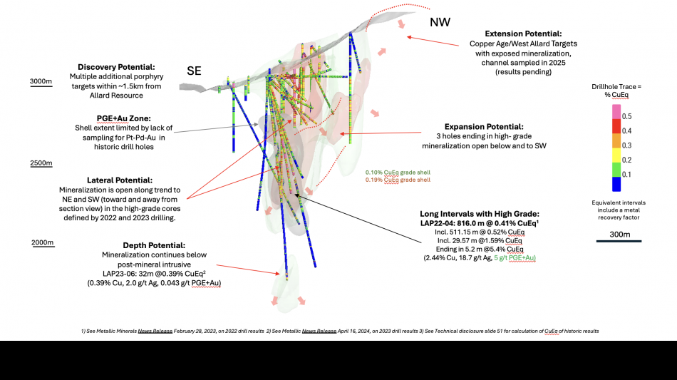 "The shallow, higher-grade portions of the Allard resource remain open to expansion toward the southwest, and the mid- to deeper higher-grade zone remains open along trend, demonstrating significant room to continue to grow the resource with further drilling. Beyond the Allard resource area, the broader La Plata district remains significantly underexplored, with multiple untested porphyry centers, high-grade epithermal targets, and an expanding suite of U.S.-designated critical minerals. As we advance toward a focused 2026 drill program, refine targets using modern data analytics, and evaluate innovative metallurgical approaches through our collaboration with Columbia University, we believe Metallic is well positioned to unlock additional value for shareholders and demonstrate the long-term strategic importance of La Plata as a potential domestic source of copper, precious metals, and critical minerals."