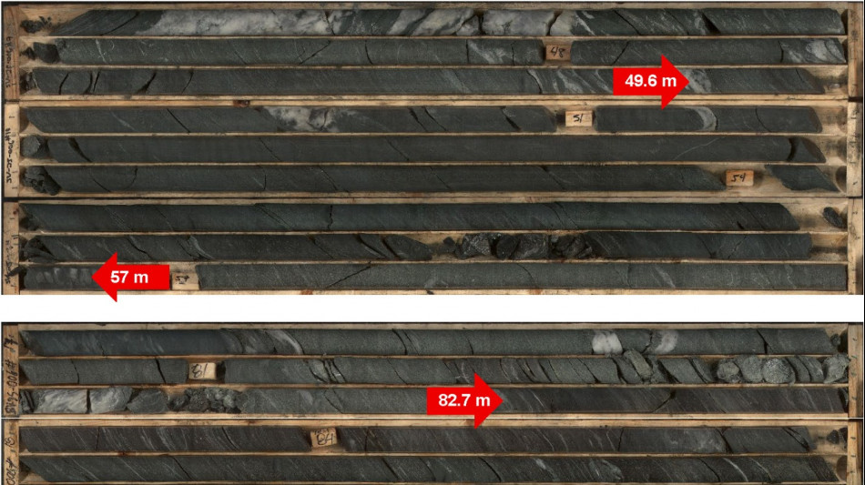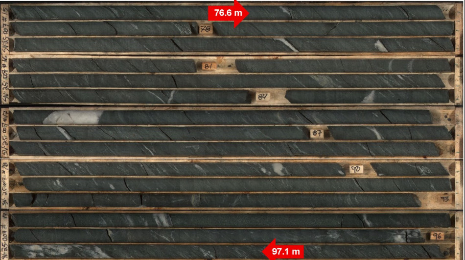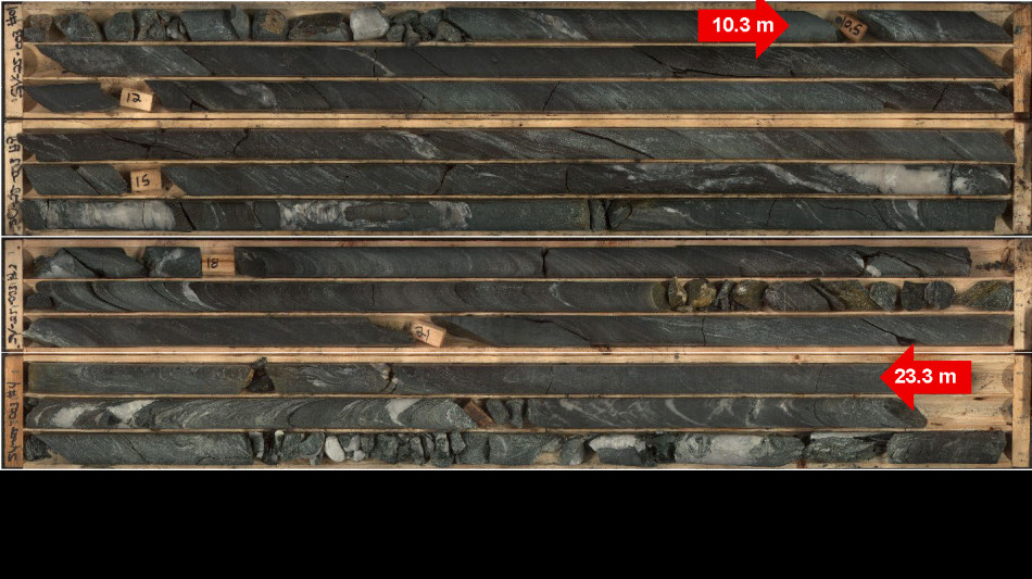 SV-25-007: 50.6 metres of target mineralization was intercepted beginning at 2.65 metres downhole, with multiple intervals over 5 metres in width up to 21.5 metres.