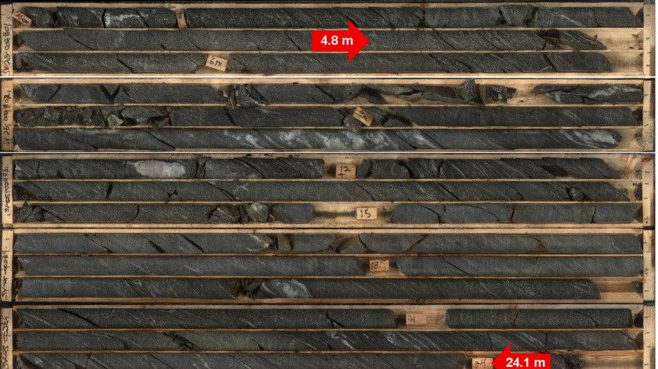 SV-25-002: 57.8 metres of target mineralization was intercepted beginning at 20.14 metres downhole, with multiple intervals over 4 metres in width up to 19.35 metres.