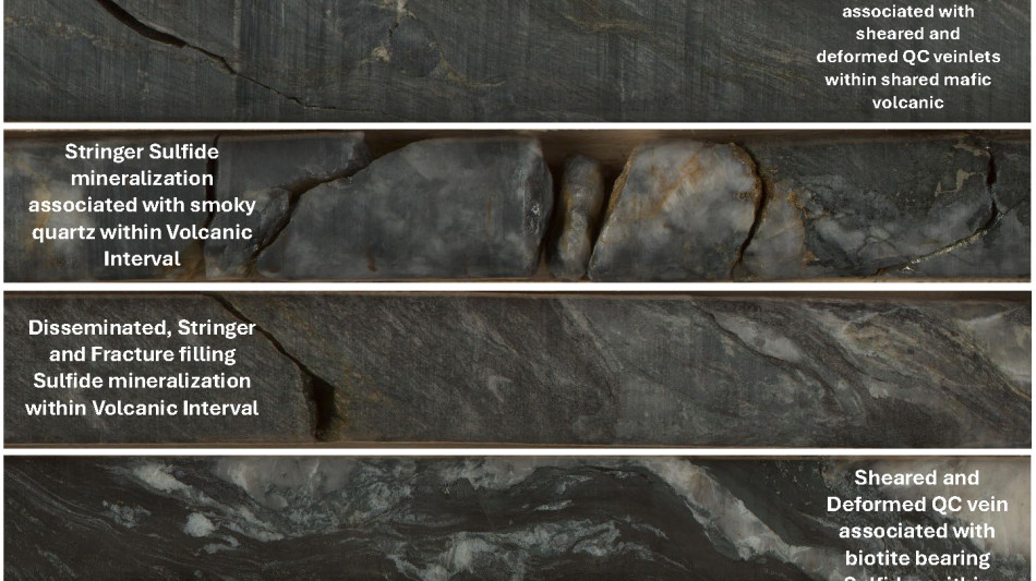 The mineralized sections of SV-25-003 dominantly including pyrite and less pyrrhotite in different forms of disseminated, cluster, stringer, and fracture filling are hosted within the sequence of sheared and partially extensionally deformed mafic to intermediate volcanic, and less mafic intrusion as well intermediate volcanic and intrusion rock formations associated with quartz-carbonate vein and veinlet system and the main alteration products of chloritization, biotitization and carbonatization, and less silicification. Figure 6 illustrates the longest intercepted mineralized interval downhole this drill hole.