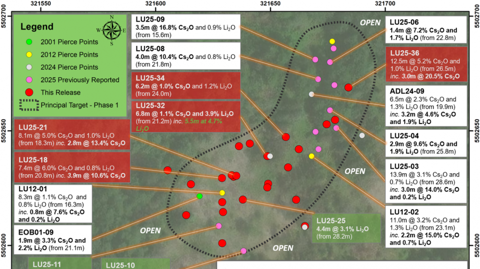 High-grade cesium intercepts from holes LU25-12 to LU25-39 (see Table 1) include:
