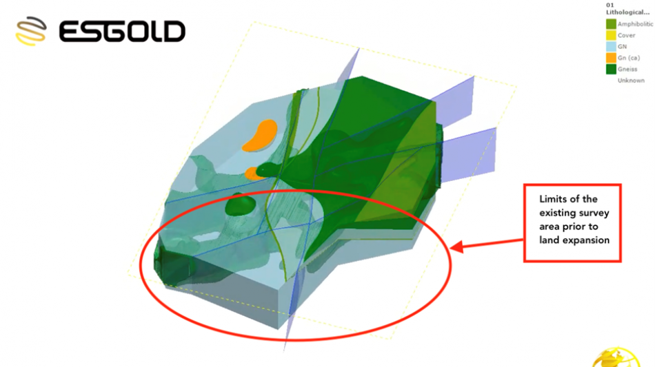 To date, only a portion of ESGold's land package has been evaluated using modern deep-penetrating geophysics.