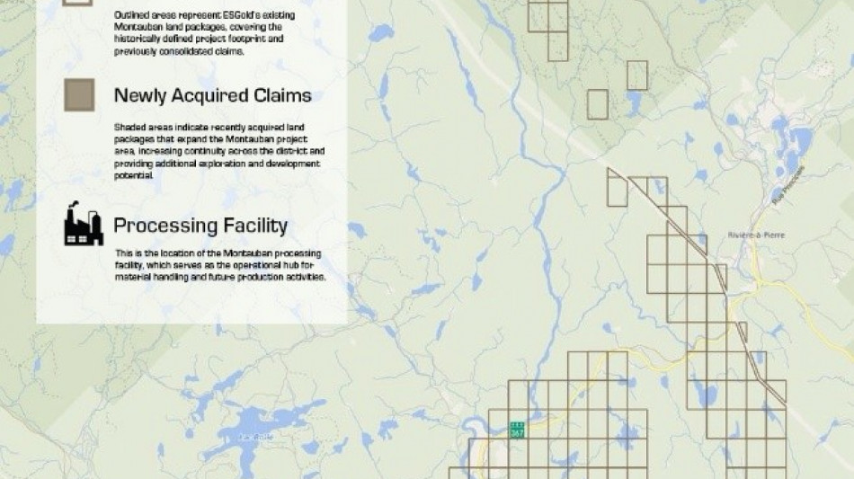 VANCOUVER, BRITISH COLUMBIA / ACCESS Newswire / February 5, 2026 / ESGold Corp. (CSE:ESAU)(OTCQB:ESAUF)(FSE:Z7D) ("ESGold" or the "Company") is pleased to announce that it has staked an additional 144 mining claims totaling approximately 7,668 hectares in and around its Montauban project, significantly increasing the size of its Montauban land position in Québec.