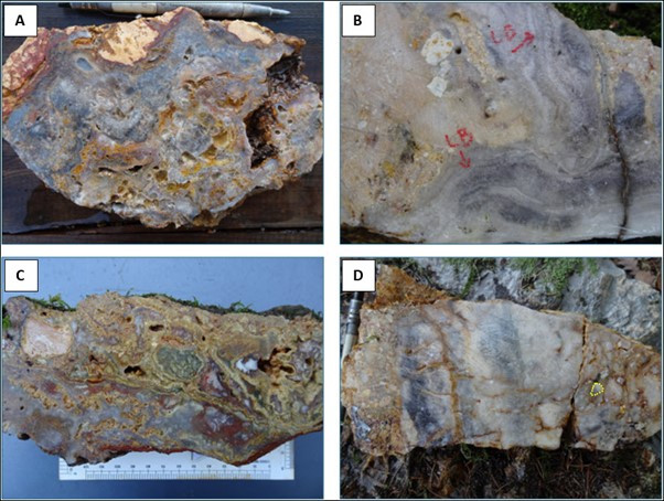 Figures 3, 4, 5, 6 and 7 show images of the surface float rock that have contributed to the BULGOLD mapping and prospecting framework with a particular focus on the Kopernica Vein System.