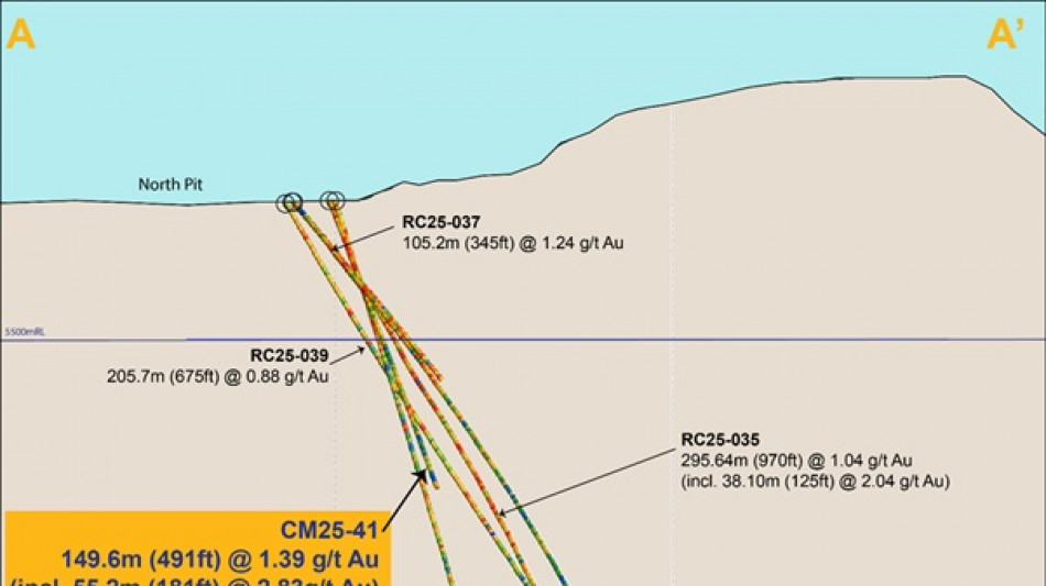 In particular, the presence of high-grade zones within the broader mineralized envelopes (for example, 55.2m @ 2.83 g/t Au within CM25-41) may present an opportunity for a follow-up underground mining phase to selectively extract higher-grade material after completion of open-pit operations, thereby potentially extending the productive life of the project.