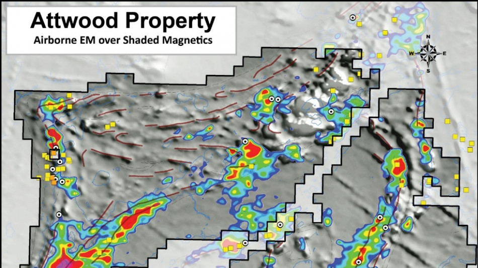 The goal at Attwood for 2026 is to resolve targets for drill testing in 2027. Work this year will include a property-wide airborne electromagnetic survey as well as geological mapping, prospecting and sampling.