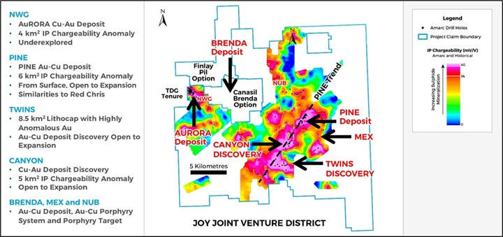 "The extensive TWINS sulphide system forms the largest porphyry lithocap in the JOY District - larger than that hosting the AuRORA Deposit," said Dr. Diane Nicolson, President and CEO. "Lithocaps represent the top of a volcanic or magmatic system which can conceal copper-gold porphyry targets below. A number of comprehensive, science-based airborne and ground exploration surveys are used to see through these lithocaps and guide discovery-focused drilling. The large lithocap at TWINS is proving to have the potential to conceal exciting porphyry copper-gold systems. Certainly, the AuRORA and TWINS Discoveries are proof of exploration concept for lithocap exploration across the JOY District. Anchored on the growing AuRORA Deposit, which the Amarc team believes is a Tier One asset in the making - there is outstanding potential for the emerging development of a world class district in the Toodoggone region that could be similar to the Golden Triangle. Comprehensive planning for the 2026 season is currently underway to continue to realize the full potential of the JOY District."