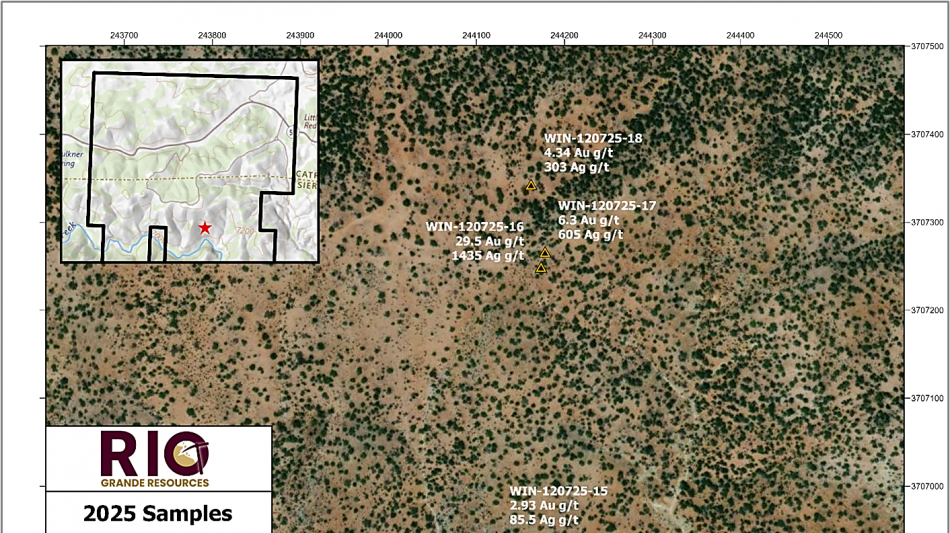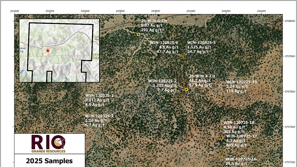 VANCOUVER, BC / ACCESS Newswire / February 19, 2026 / Rio Grande Resources Ltd. (CSE:RGR)(OTCQB:RGRLF) ("Rio Grande" or the "Company") is pleased to announce assay results from its December 2025 surface sampling campaign (see News Release, December 22, 2025) carried out by Dahrouge Geological Consulting USA Ltd. ("Dahrouge") at the Winston Gold-Silver Project (the "Winston Project" or the "Project") located in the Black Range Mountains of Sierra County, New Mexico. The program returned results (figure 1) from a newly identified and previously unsampled mineralized area within the Poverty Creek area of the Project referred to as the "Poverty Creek Trend." Sampling returned gold values up to 41.2 g/t Au and silver values up to 1,435 g/t Ag, further confirming high-grade precious metal mineralization across multiple structurally controlled zones within the property.