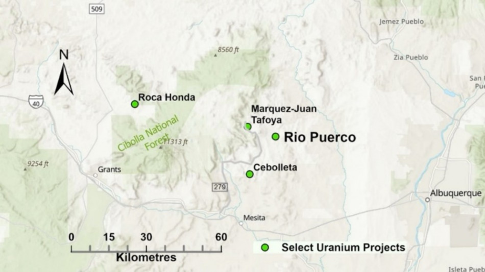 Rio Puerco is located at the eastern end of the Grants Uranium District which is the largest historic producer of uranium in the United States (Figure 2). Mines that operated between about 1950 and 2002 produced over 340 million pounds of U3O8. The district is currently seeing renewed exploration and development activity.