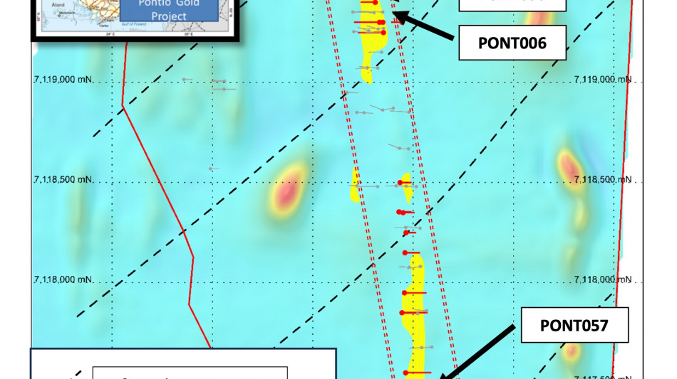 Pontio Gold Project (Western Finland): Historical and recent drilling has outlined near-surface gold mineralization along a multi-kilometre trend that remains open along strike and at depth.