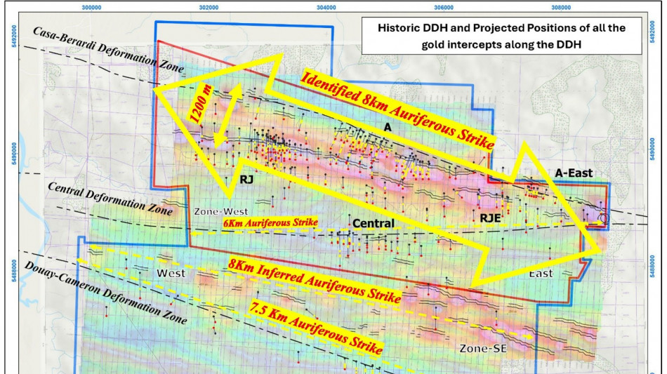 Significant Undrilled Strike Length: The "A" Zone alone has >3.1 km of strike open (only ~35% drilled historically), while the RJ Zone has >4.75 km remaining untested - offering substantial room for lateral expansion of known mineralization.