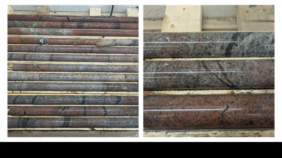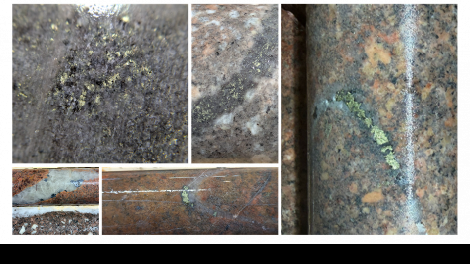 Based upon visual core logging, the stock is so far principally composed of a granite porphyry to quartz monzonite porphyry intrusive, compositions that are common to many major porphyry copper systems worldwide. The porphyry contains abundant phenocrysts of feldspar (plagioclase and orthoclase) and quartz with common but lesser mafic phenocrysts (hornblende and biotite). The common presence of both primary igneous hornblende and biotite (Figure 4), both hydrous minerals, in this felsic porphyry is indicative of a 'wet' hydrous source magma that is critical to the late-stage development of abundant, metal-rich, hydrothermal fluids that are ultimately responsible for the mineralization of copper and other metals in porphyry copper systems typically as sulphides within veins crossing the stock and intruded country rocks.