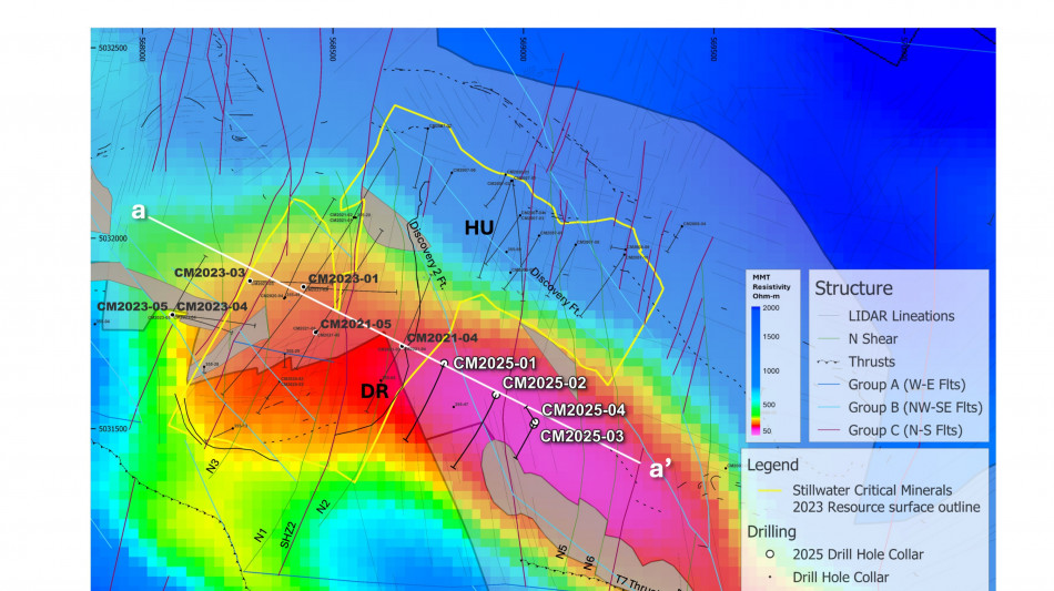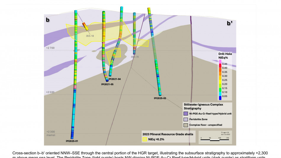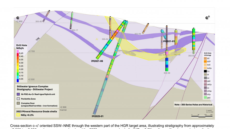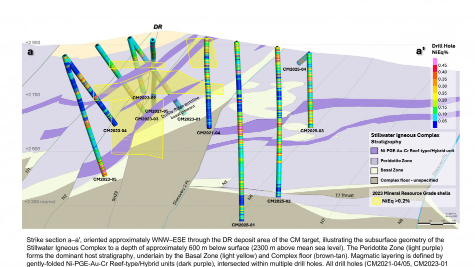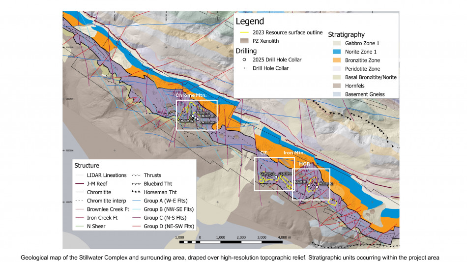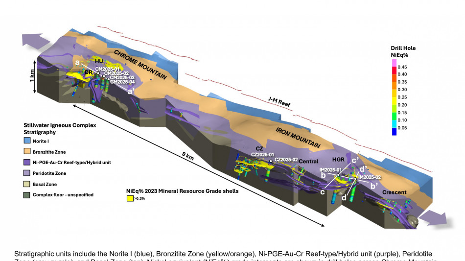 The 2025 drill program was designed to expand the January 2023 MRE along a 10-kilometer ("km") mineralized trend at Stillwater West, where a broad zone of sulphide-rich nickel, copper, cobalt, PGE, gold and chromium mineralization has been defined across multiple deposits.